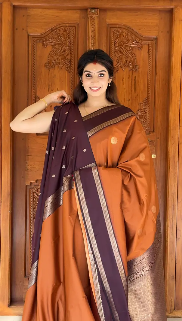 Rust orange Soft Silk Saree 001